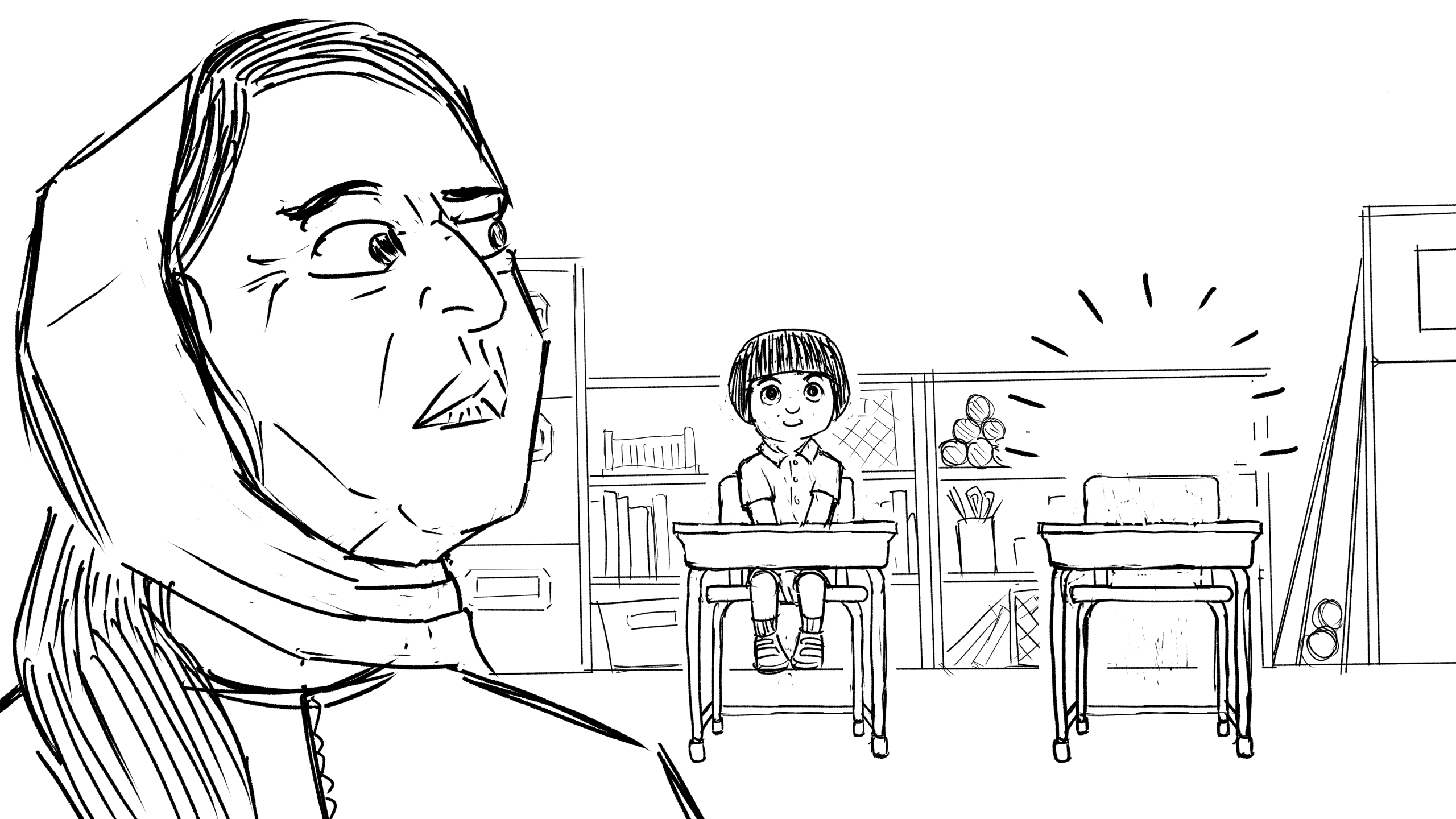 “Tell me,” Miss Eleina pointed her chalk at him like a skewer, “or I’ll tell your Oo’ma and Oo’pa that you’ve been a very uncooperative student.”
