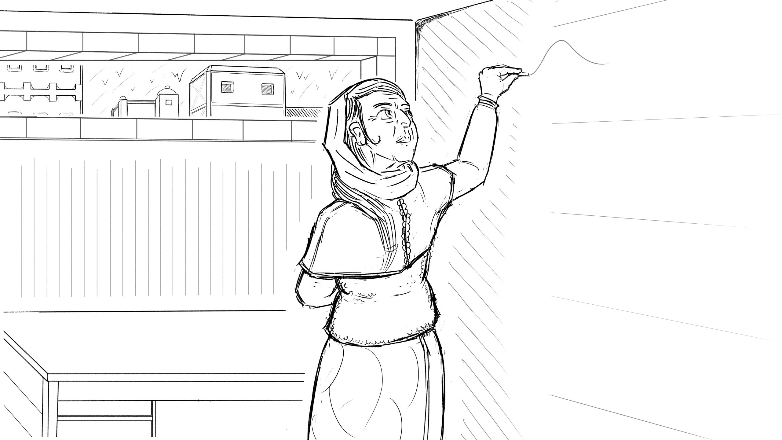 But pride didn’t reverse time. On her head was the same faded floral headscarf that she’d started wearing ten years ago once she realized that the hair on the top of her head was going scant. And unlike her hair, the lines on her face had only grown more abundant with the passing days. They were lit spectacularly from two different directions; by the cyan glow of the water-bulbs that hung overhead, and the dull half-light that drifted in slanted through the long, open slot that lined one side of the classroom. At least the natural twilight pervading the room was flattering.