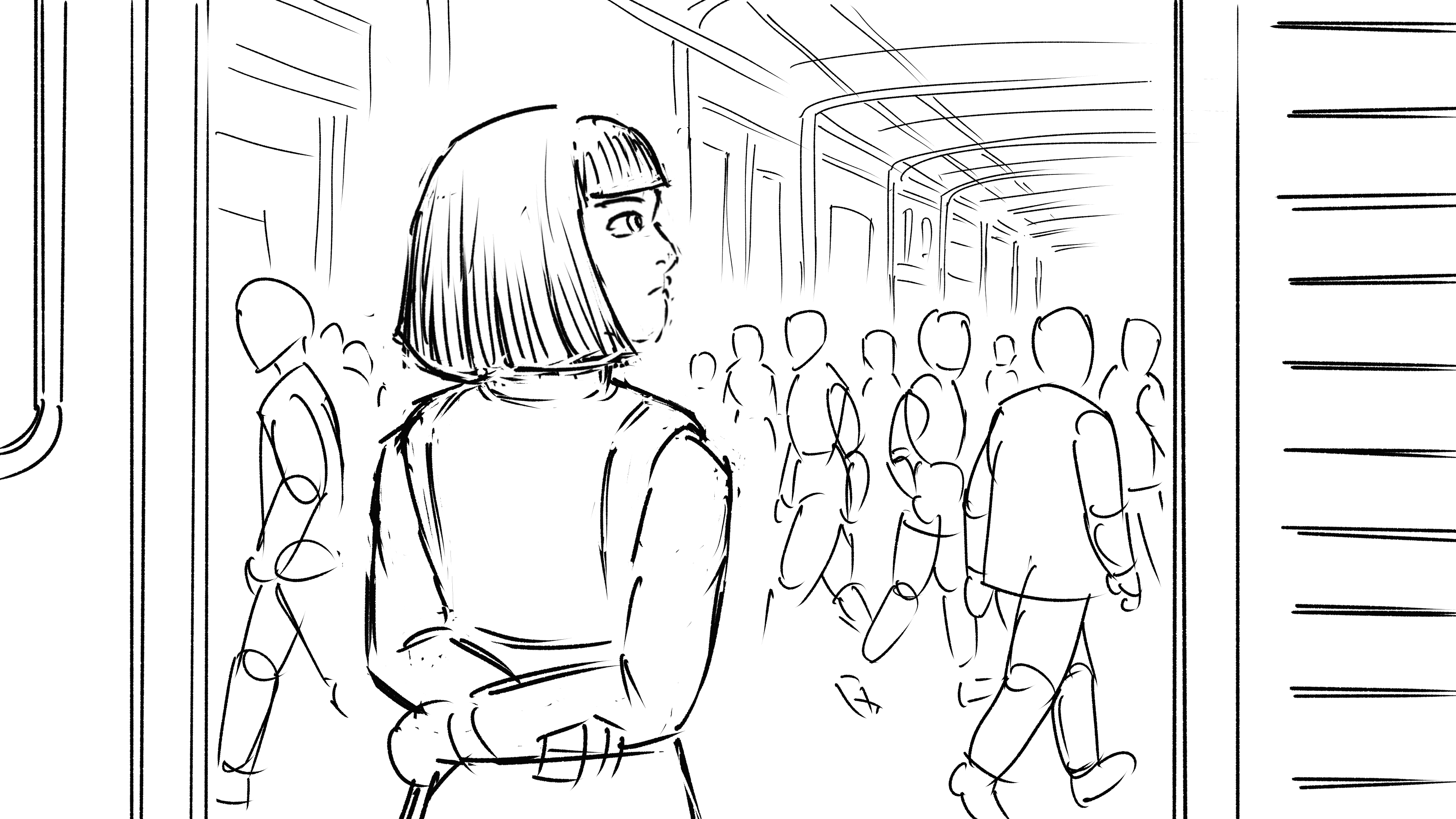 She calmly stepped through the shuttle doors. Beyond them, the stations bustled with activity. She strode confidently into the swarming crowds without a glance back.